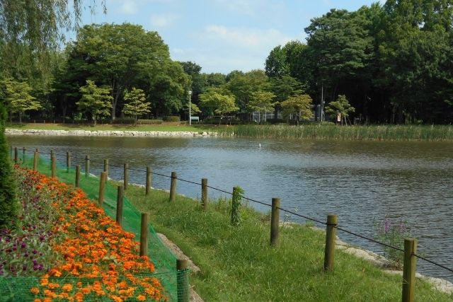 洞峰沼を中心とし緑に囲まれた公園で、屋内温水プール・テニスコート・体育館、そのほか多目的フィールド、アスレチックなどがあります。