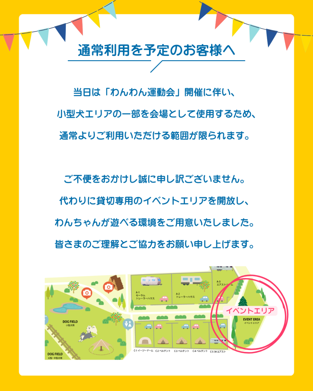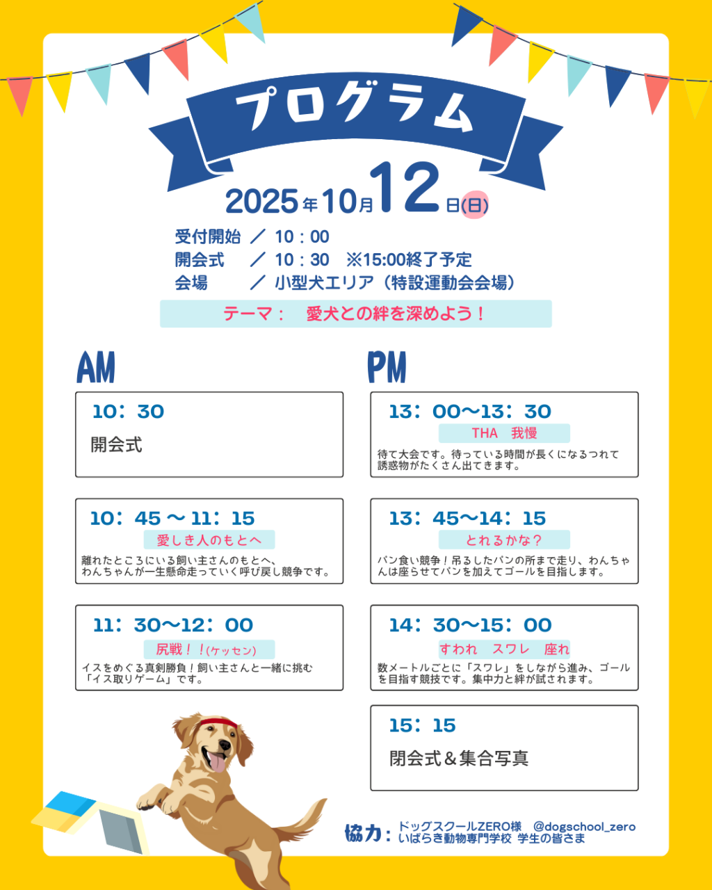 - ワンちゃんは運動会会場内でノーリードにしないでください。