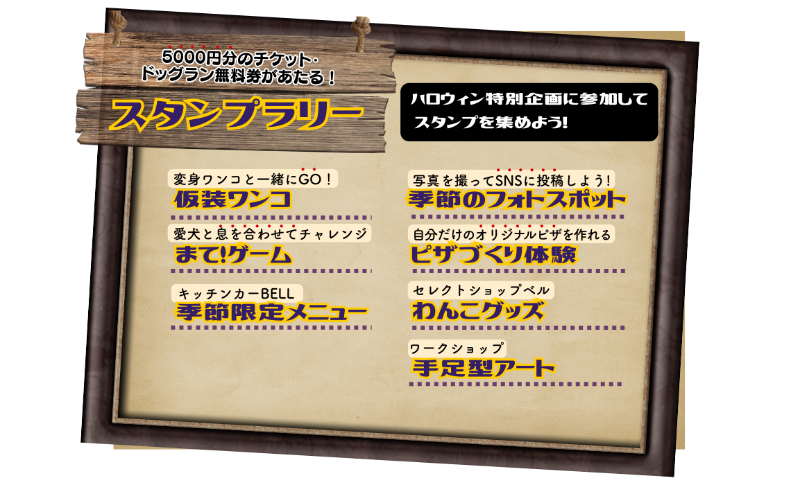 参加方法 | 参加無料 総合受付でスタンプラリーの台紙をお受け取りください。 ※ルーシーリゾートのご利用やイベント等の参加の際に別途料金が発生する場合がございます。 |