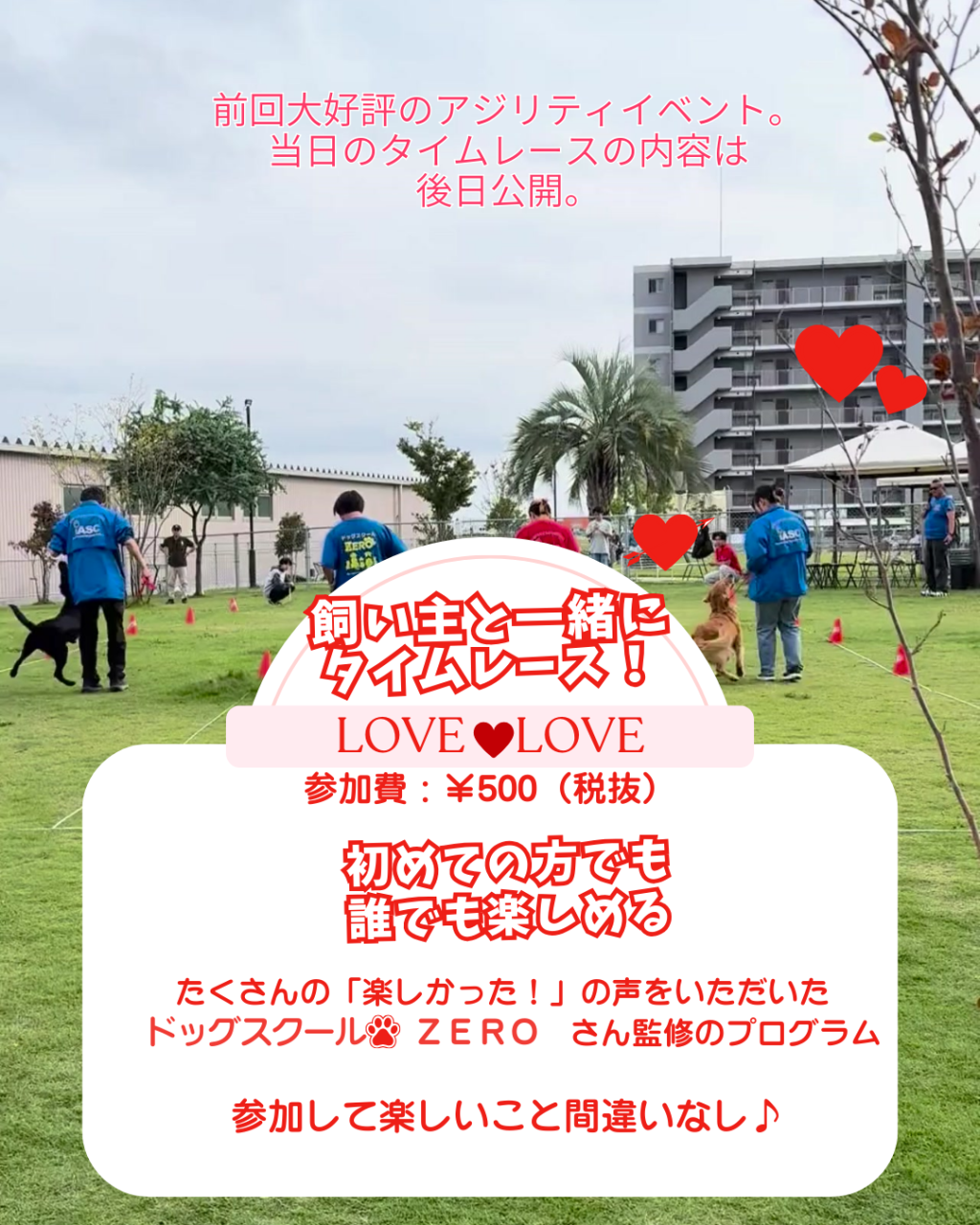 飼い主さんと愛犬が一緒に楽しめる参加型タイムレースイベントを開催します。