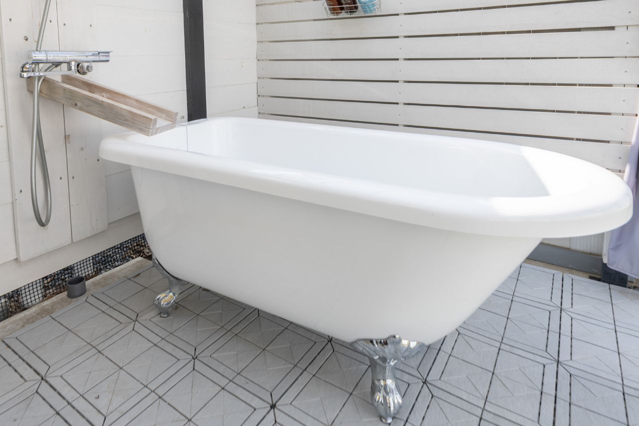解放感あふれる浴槽・シャワー・トイレがサイト区画内に完備。
